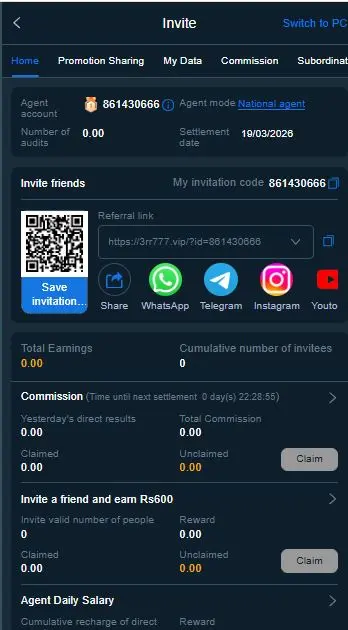 You can earn extra coins by inviting your friends to play. Once your referral joins and plays, you both get rewards. It’s a great way to earn passively while helping others discover the fun of 3rr777.